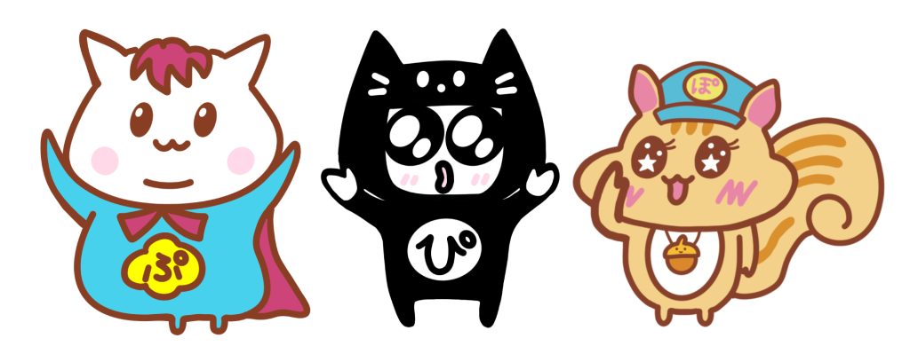 キャラクター「ぷっちょいの」「ブラックぴえん」「ぽりすりす」は、相棒「Zappy」が描いています!